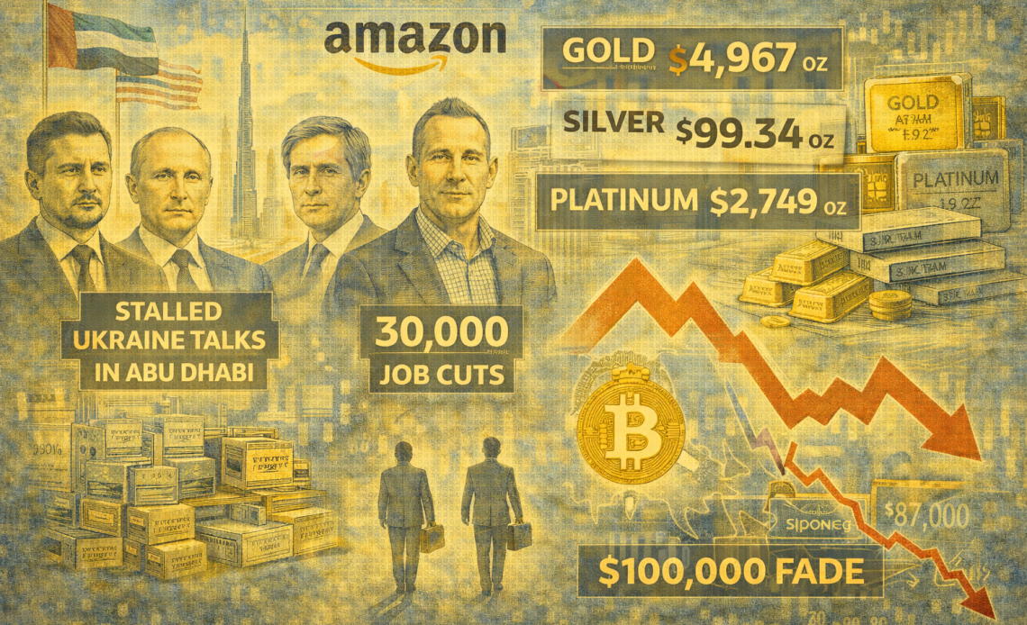 Evening digest: Bitcoin slides below $90K, Amazon layoffs mount, gold at record highs