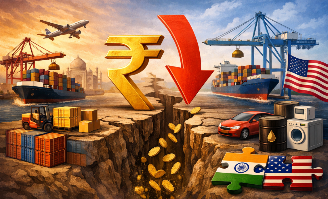 A widening gap between imports and exports could add pressure on the already weak rupee, which has been weighed down by capital outflows and uncertainty about the timing of a potential US trade deal.